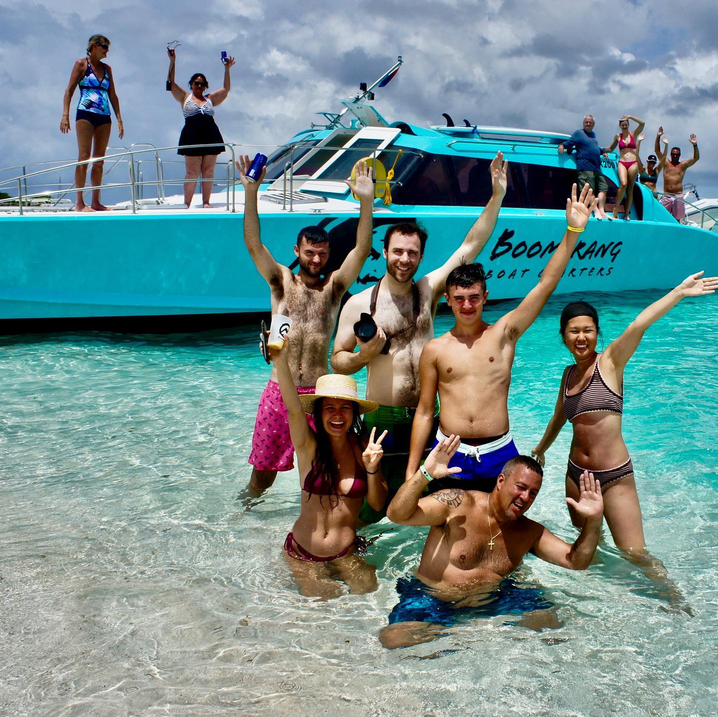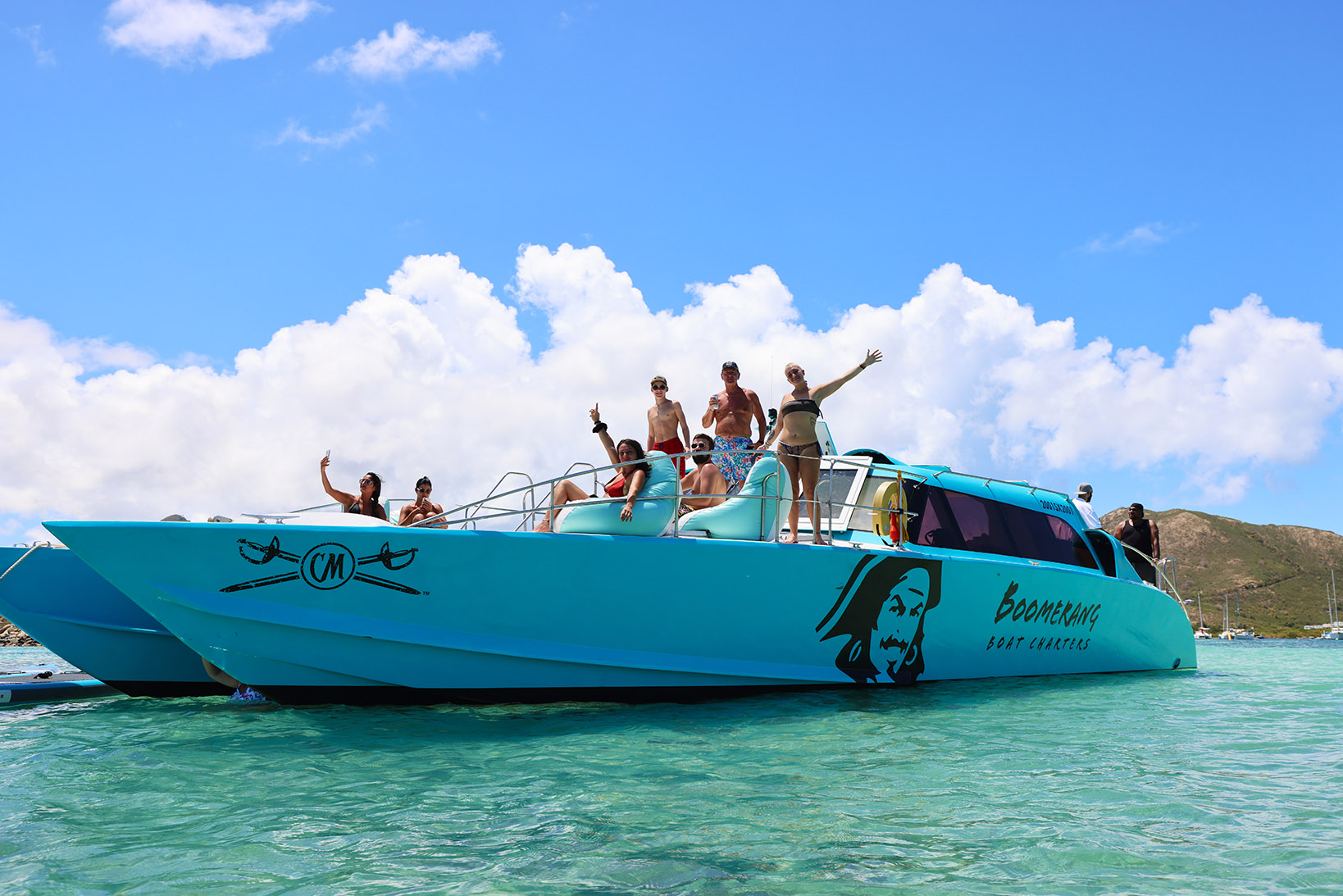 Boomerang est le catamaran parfait pour célébrer autour de Sint Maarten, Anguilla et Saint Barth. le choix idéal pour ceux qui recherchent un grand voyage de plage et un endroit branché. L’équipage est VRAIMENT le meilleur choix que vous puissiez avoir pour une excursion d’une journée heureuse. la spécialité de Boomerang, ce sont les cocktails. ce catamaran peut embarquer jusqu’à 25 personnes et la conception de Boomerang offre de rester au sec à bord, le bateau dispose également d’un puissant système de sonorisation. Il y a une échelle à l’avant entre les coques pour marcher directement du bateau à la plage. À bord, vous trouverez des jouets aquatiques amusants comme un cygne géant, du matériel de plongée en apnée et des nouilles de natation. ce bateau de fête est le meilleur choix pour créer des souvenirs avec vos amis.